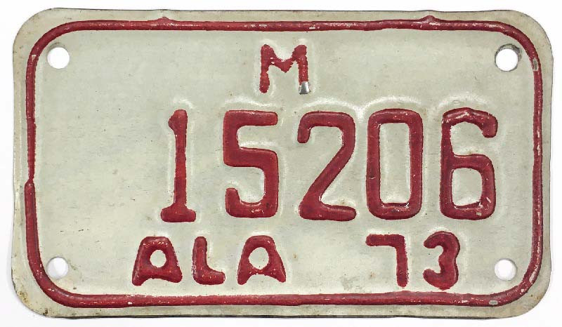 Click the button below to add the Alabama 1973 Motorcycle License Plate - 15206 to your wish list.