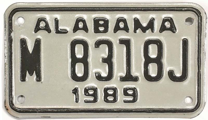 Click the button below to add the Alabama 1989 Motorcycle License Plate - M8318J to your wish list.