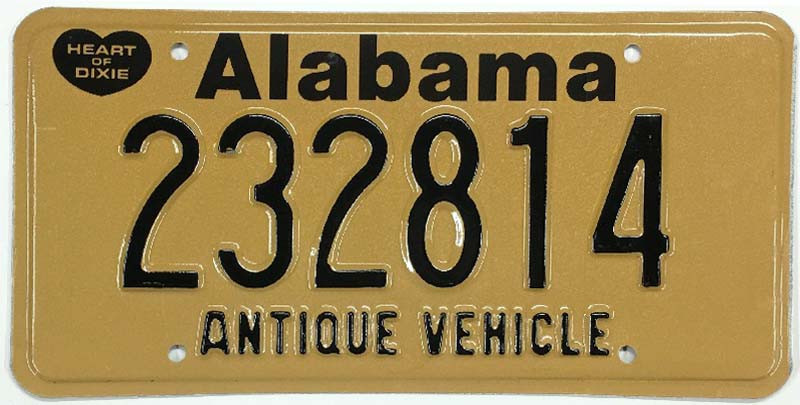 Click the button below to add the Alabama 1990-1996 Antique Vehicle License Plate - 232814 to your wish list.