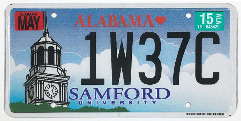 Click the button below to add the Alabama 2015 Samford University License Plate - 1W37C to your wish list.