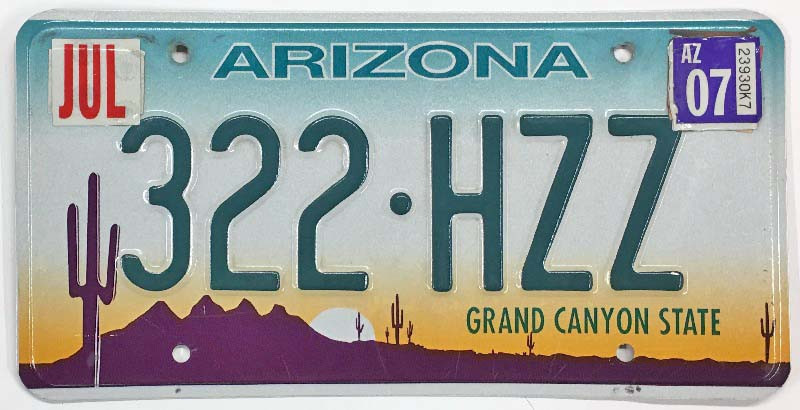 Click the button below to add the Arizona 2007 "Desert Sunset" Embossed License Plate - 322HZZ to your wish list.