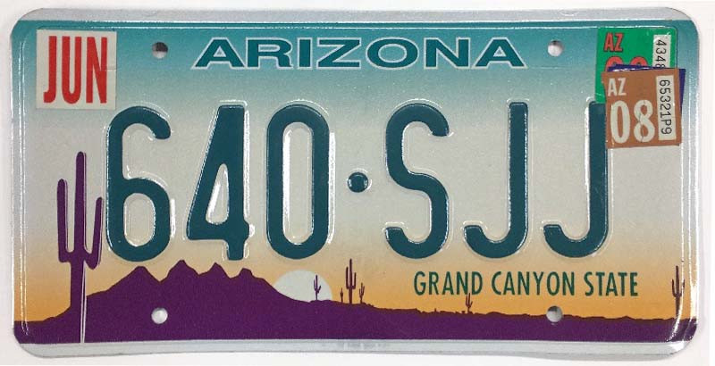 Click the button below to add the Arizona 2008 "Desert Sunset" Embossed License Plate - 640SJJ to your wish list.