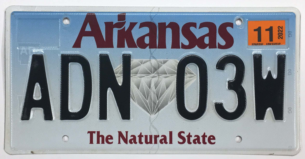 Click the button below to add the Arkansas 2022 "Diamond" License Plate - ADN03W to your wish list.