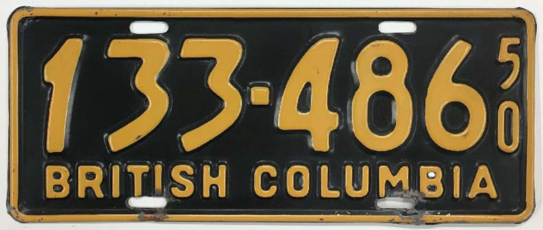 Click the button below to add the British Columbia Canada 1950 License Plate - 133486 to your wish list.