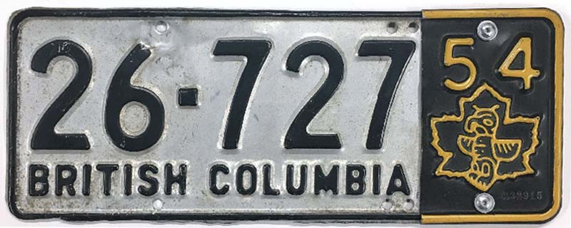 Click the button below to add the British Columbia Canada 1952 1954 License Plate - 26727 to your wish list.