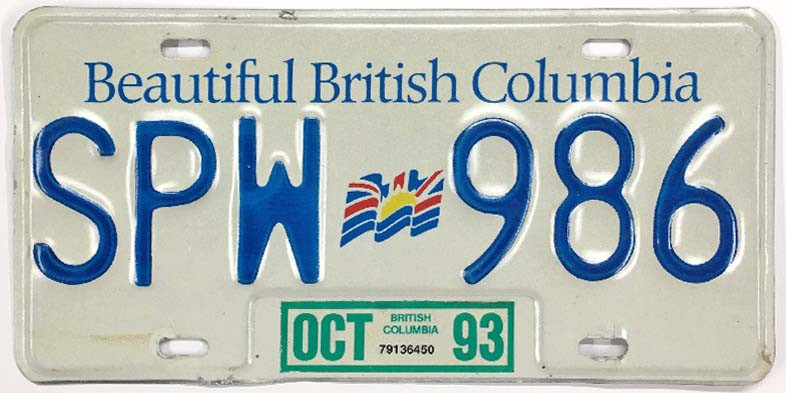Click the button below to add the British Columbia Canada 1995 "Flag" License Plate - SPW986 to your wish list.
