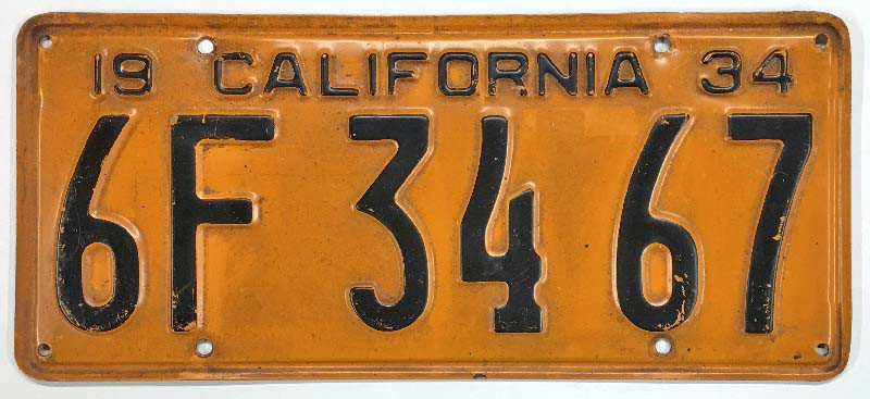 Click the button below to add the California 1934 License Plate - 6F3467 to your wish list.