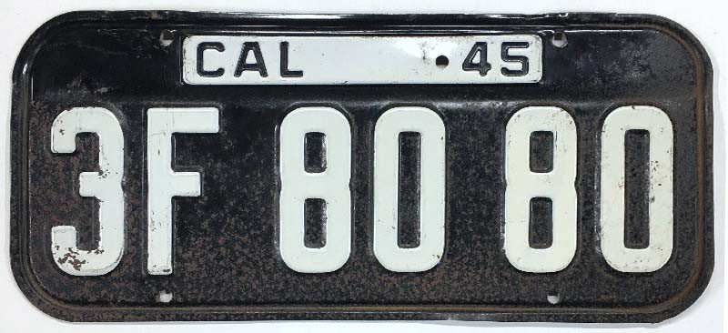 Click the button below to add the California 1945 License Plate - 3F8080 to your wish list.