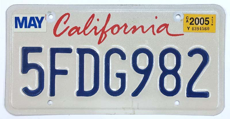 Click the button below to add the California 2005 "Lipstick Script" License Plate - 5FDG982 to your wish list.