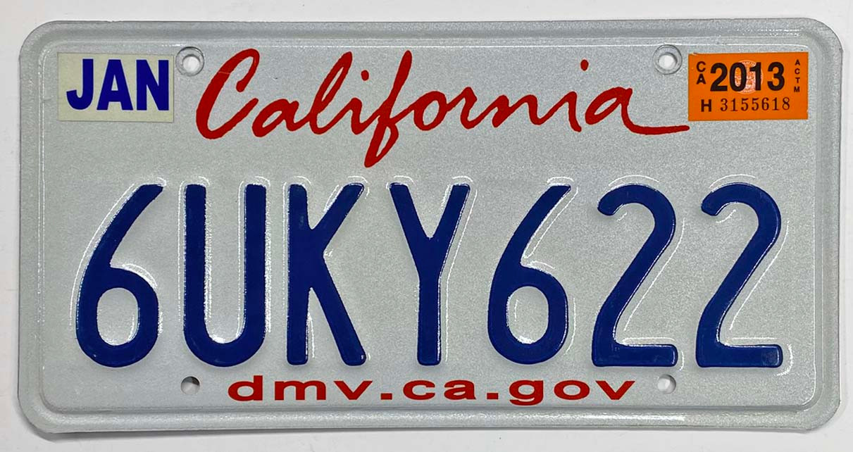 Click the button below to add the California 2013 "Lipstick Script" License Plate - 6UKY622 to your wish list.