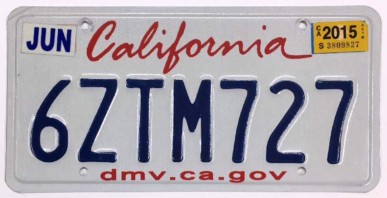 Click the button below to add the California 2015 "Lipstick Script" License Plate - 6ZTM727 to your wish list.