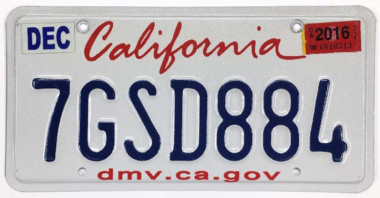 Click the button below to add the California 2016 "Lipstick Script" License Plate - 7GSD884 to your wish list.