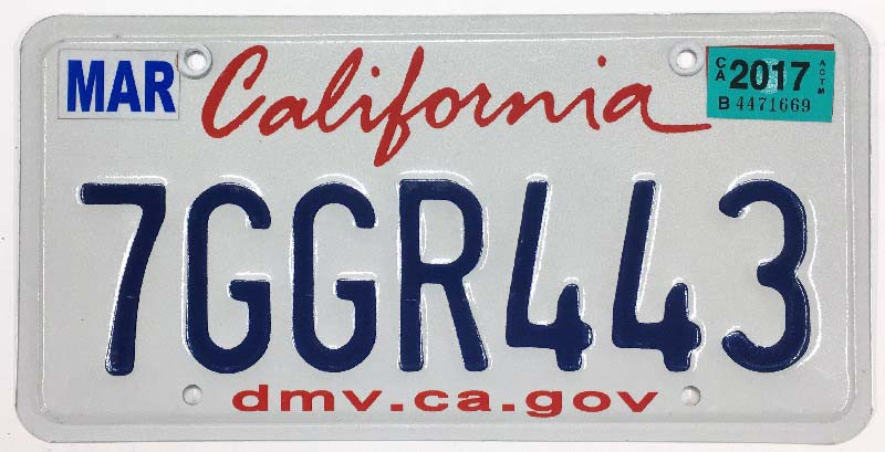 Click the button below to add the California 2017 "Lipstick Script" License Plate - 7GGR443 to your wish list.