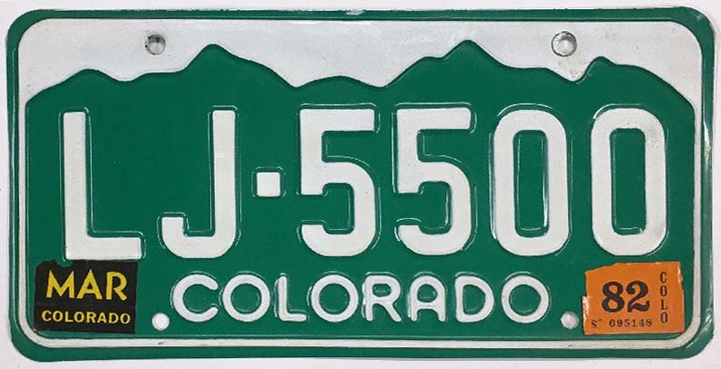 Click the button below to add the Colorado 1982 El Paso County License Plate - LJ5500 to your wish list.