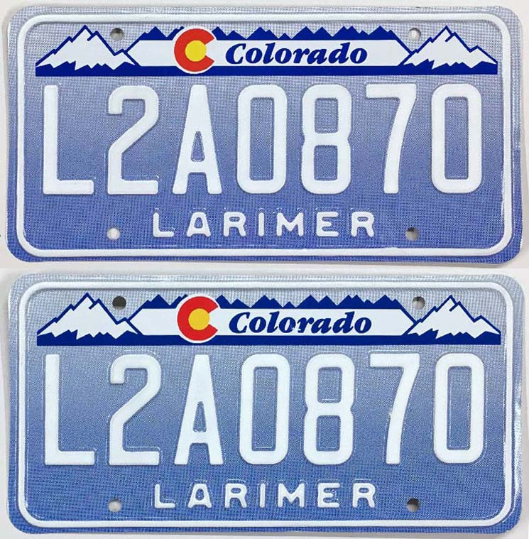 Click the button below to add the Colorado 1992-1999 Denim Designer Larimer County License Plate Pair - L2A0870 to your wish list.