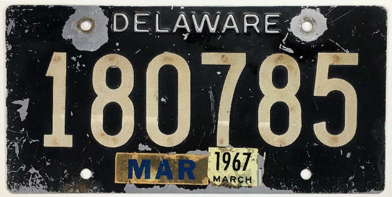 Click the button below to add the Delaware 1967 Riveted Steel License Plate - 180785 to your wish list.