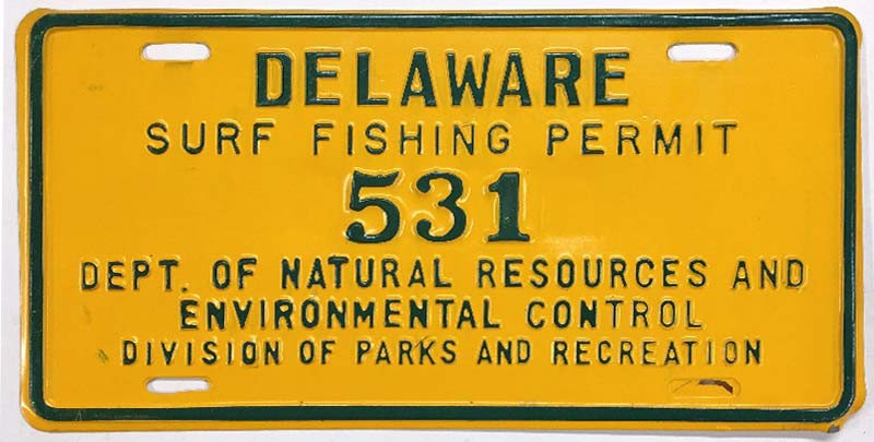 Click the button below to add the Delaware 1976 Surf Fishing Vehicle Permit License Plate - 531 to your wish list.