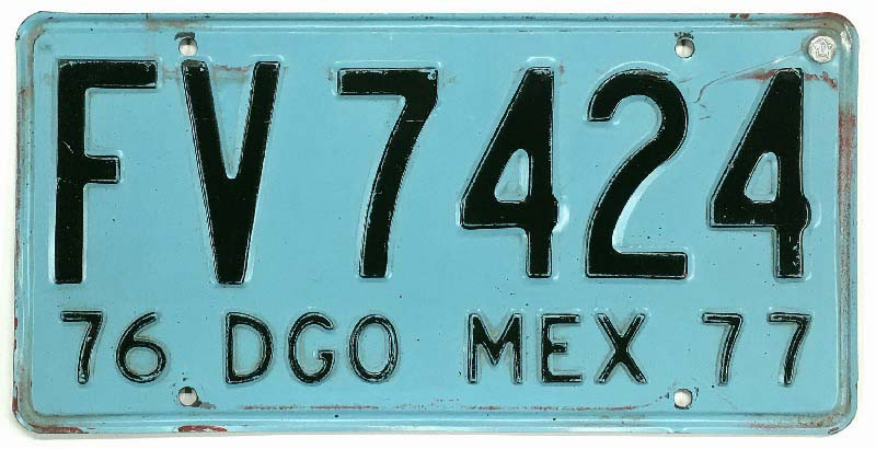 Click the button below to add the Durango Mexico 1976 1977 License Plate - FV7424 to your wish list.