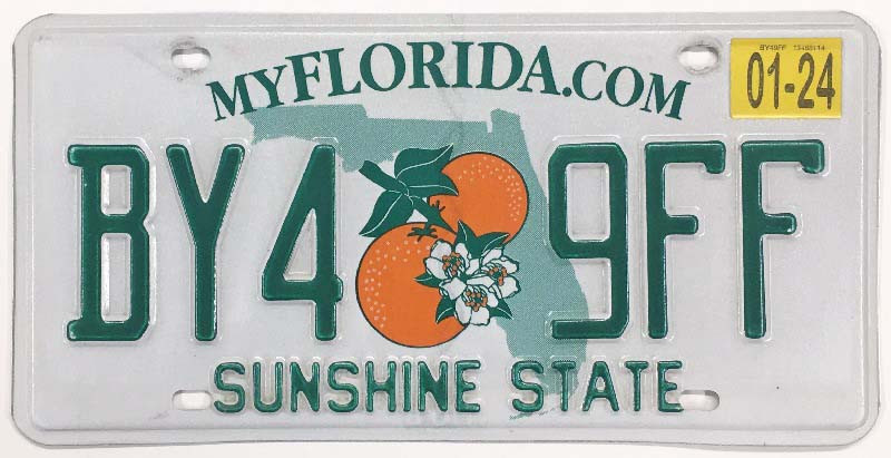 Click the button below to add the Florida 2024 "Orange Blossom" Sunshine State License Plate - BY49FF to your wish list.