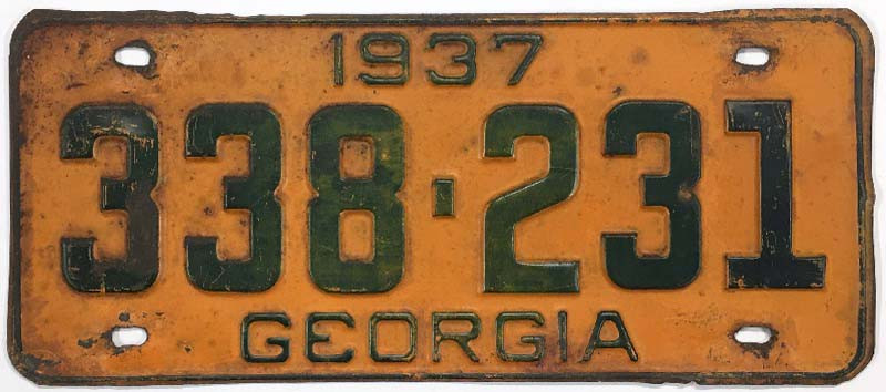 Click the button below to add the Georgia 1937 License Plate - 338231 to your wish list.