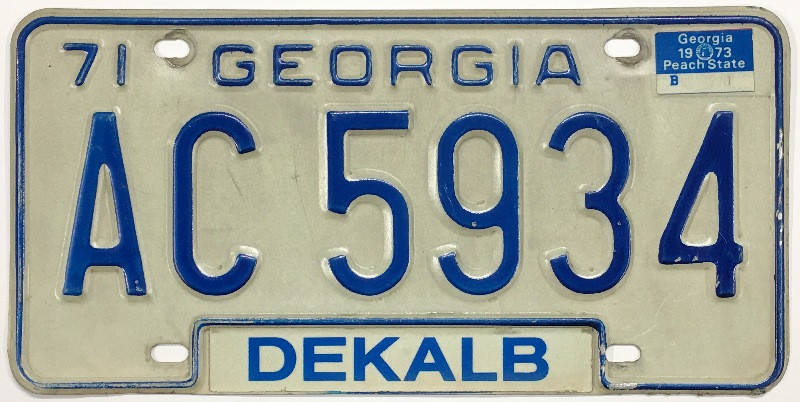 Click the button below to add the Georgia 1971 1973 Dekalb County License Plate - AC5934 to your wish list.