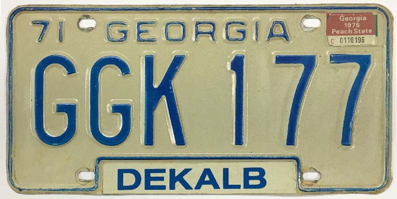 Click the button below to add the Georgia 1971 1975 Dekalb County License Plate - GGK177 to your wish list.