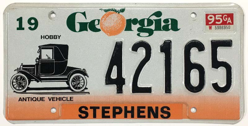 Click the button below to add the Georgia 1995 "Peach Fade" Antique Vehicle Stephens County License Plate - 42165 to your wish list.