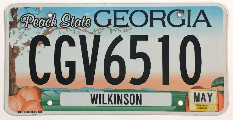Click the button below to add the Georgia 2020 "Peach Tree" Wilkinson County License Plate - CGV6510 to your wish list.