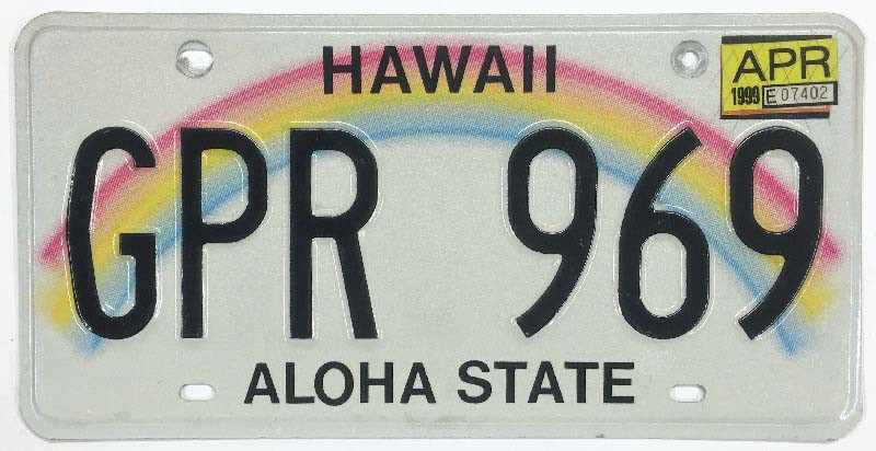 Click the button below to add the Hawaii 1999 "Rainbow" License Plate - GPR969 to your wish list.