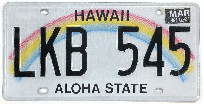 Click the button below to add the Hawaii 2022 "Rainbow" License Plate - LKB545 to your wish list.