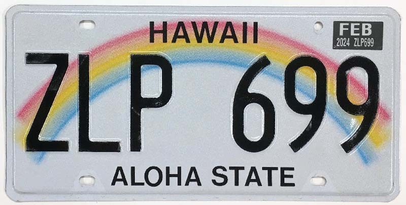 Click the button below to add the Hawaii 2024 "Rainbow" License Plate - ZLP699 to your wish list.