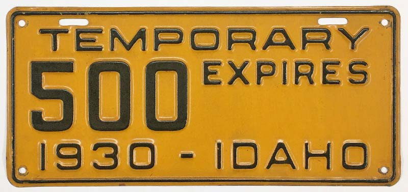 Click the button below to add the Idaho 1930 Temporary License Plate - 500 to your wish list.