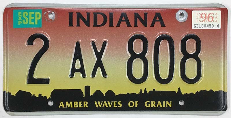 Click the button below to add the Indiana 1996 "Amber Waves of Grain" Allen County License Plate - 2AX808 to your wish list.