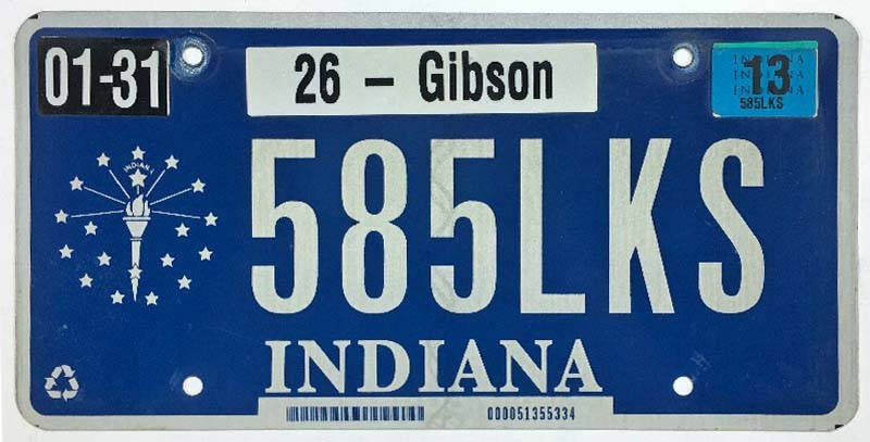Click the button below to add the Indiana 2013 "Torch" Gibson County License Plate - 585LKS to your wish list.