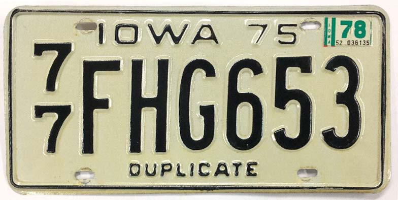 Click the button below to add the Iowa 1975 1978 Polk County Duplicate License Plate - 77FHG653 to your wish list.