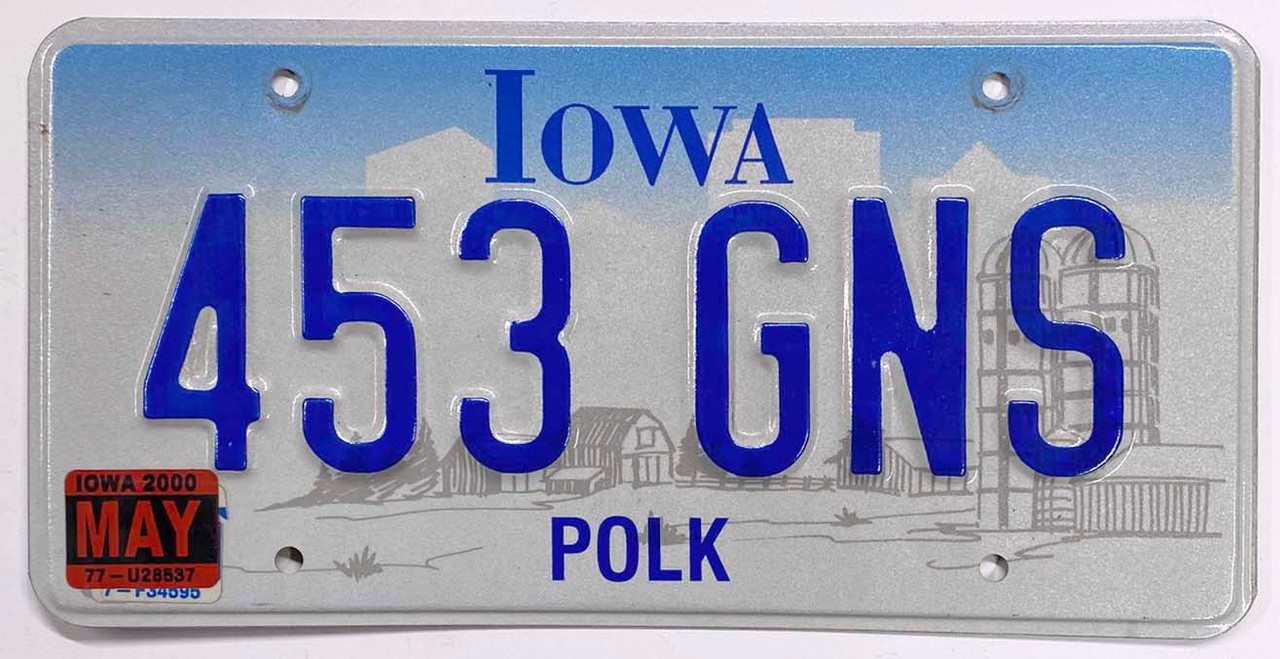 Click the button below to add the Iowa 2000 "Farm Scene" Polk County Embossed License Plate - 453GNS to your wish list.