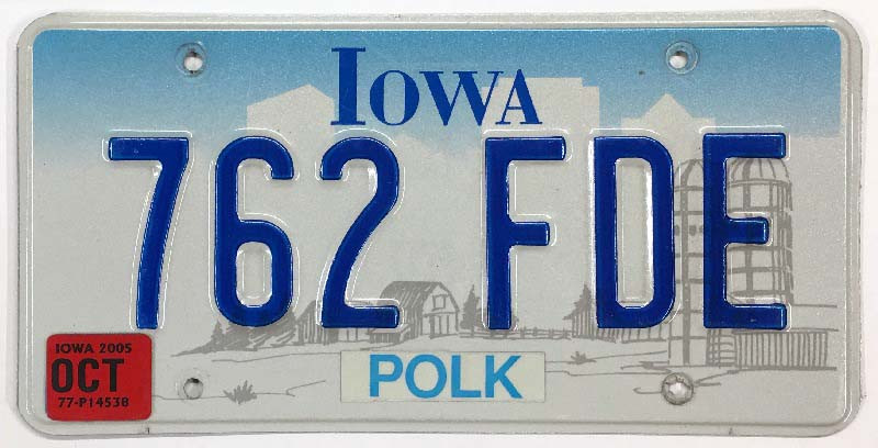 Click the button below to add the Iowa 2005 "Farm Scene" Polk County Embossed License Plate - 762FDE to your wish list.