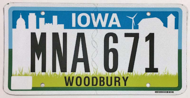 Click the button below to add the Iowa 2023 "City and Country" Woodbury County License Plate - MNA671 to your wish list.
