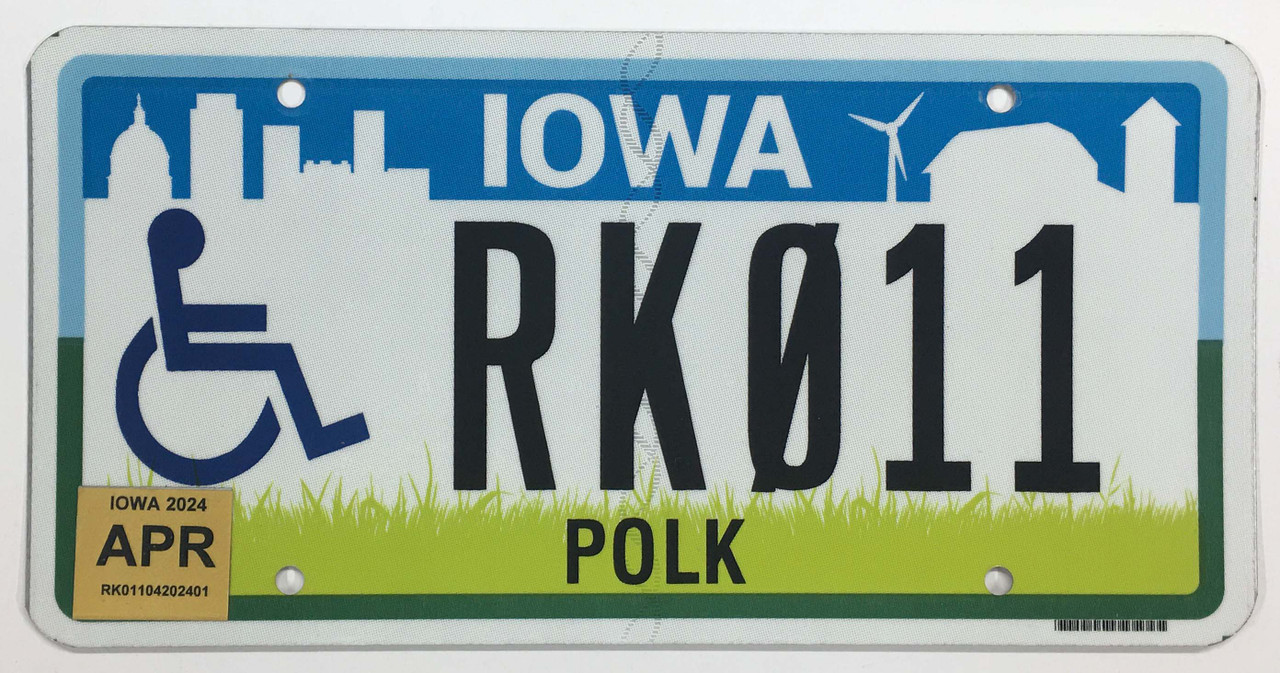 Click the button below to add the Iowa 2024 "City and Country" Handicapped Polk County License Plate - RK011 to your wish list.
