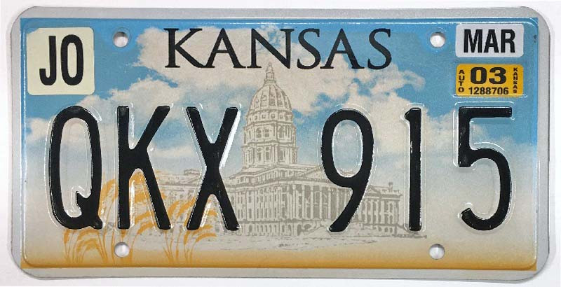 Click the button below to add the Kansas 2003 "Capitol Building" Johnson County License Plate - QKX915 to your wish list.