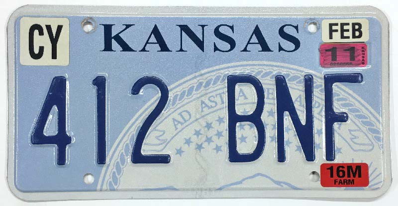 Click the button below to add the Kansas 2011 "State Seal" Clay County Farm Truck Embossed License Plate - 412BNF to your wish list.