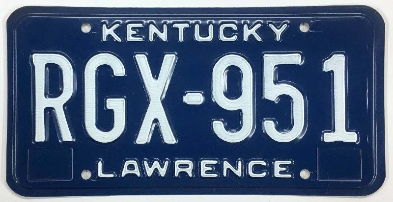 Click the button below to add the Kentucky 1984-1988 Lawrence County License Plate - RGX951 to your wish list.