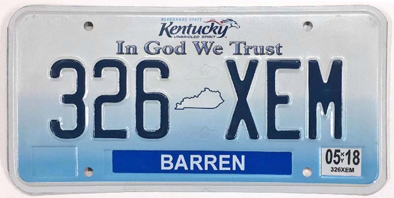 Click the button below to add the Kentucky 2018 "Unbridled Spirit" In God We Trust Barren County License Plate - 326XEM to your wish list.