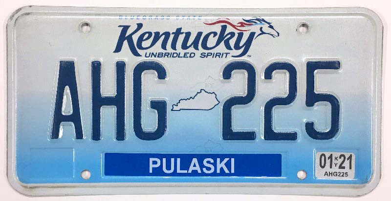 Click the button below to add the Kentucky 2021 "Unbridled Spirit" Pulaski County License Plate - AHG225 to your wish list.
