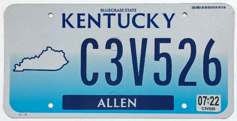 Click the button below to add the Kentucky 2022 "Bluegrass State" Allen County License Plate - C3V526 to your wish list.