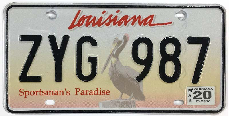 Click the button below to add the Louisiana 2020 "Brown Pelican" License Plate - ZYG987 to your wish list.