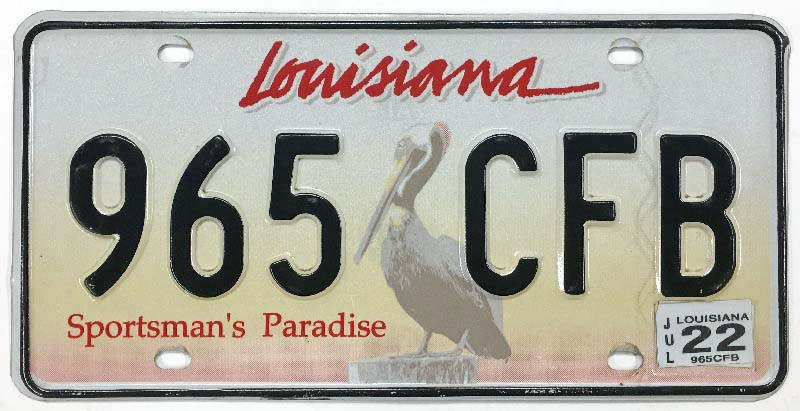 Click the button below to add the Louisiana 2022 "Brown Pelican" License Plate - 965CFB to your wish list.