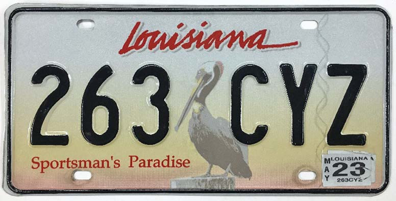 Click the button below to add the Louisiana 2023 "Brown Pelican" License Plate - 263CYZ to your wish list.
