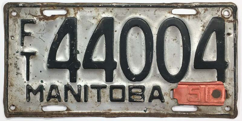Click the button below to add the Manitoba Canada 1950 1951 Farm Truck License Plate - FT44004 to your wish list.