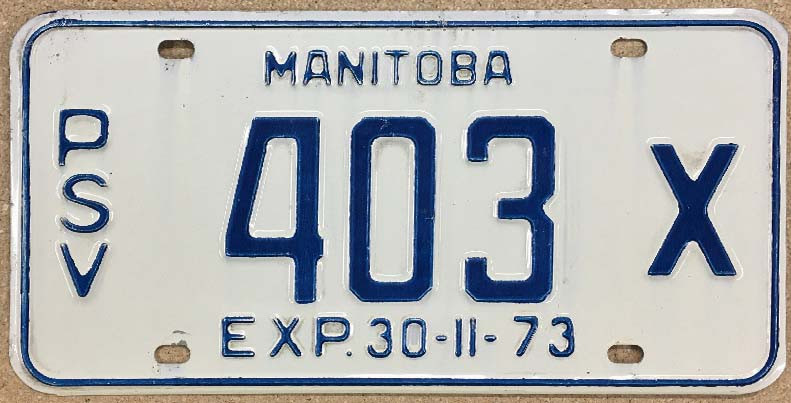 Click the button below to add the Manitoba Canada 1973 Public Service Vehicle Extra-Provincial License Plate - 403X to your wish list.